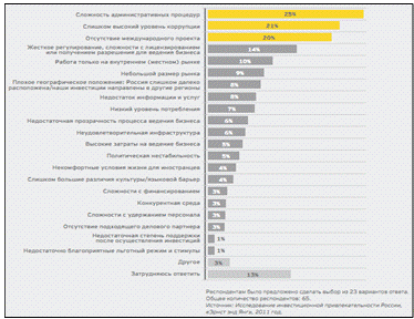 Основные барьеры для инвестиций в экономику России, %