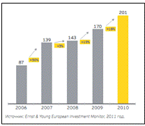 иностранных инвестиций. В 2010 году эксперты отметили спад в 4% объема
