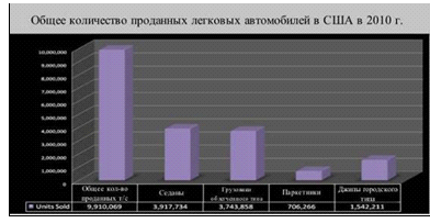 Общее количество проданных легковых автомобилей в США в 2010