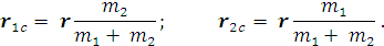 системе центра масс радиус-векторы частиц могут быть выражены через r следующим образом: