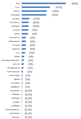 Среди них молодежные субкультуры как специфические формы самоорганизации