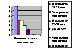 % опрошенных считают, что это лучше делать в 25-30 лет, 13 % - до 20 лет, 20 %
