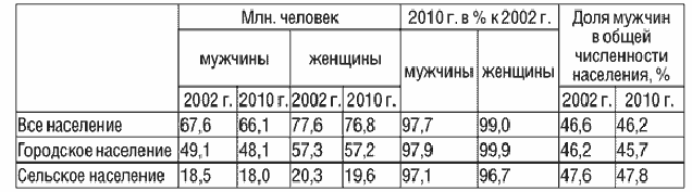 численность женщин превышает численность мужчин на 10,8 млн. человек. В 2002 г.