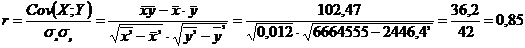 Таблица 1 Результаты корреляционно-регрессионного анализа