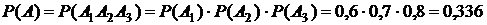 работы в течение времени t соответственно равна 0,6; 0,7 и 0,8. Найти