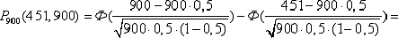 что событие произойдёт не менее, чем в 451 опыте из 900. Воспользуемся