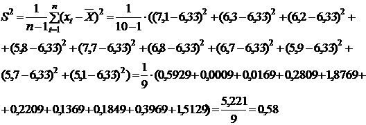 лежит в доверительном интервале (5,79; 6,87) с доверительной вероятностью 0,95.