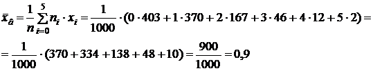 партии, а в другой строке - количество ni партий, содержащих xi нестандартных