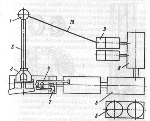 шламовый насос; 8 - приёмная ёмкость; 9 - буровой насос; 10 - нагнетательный