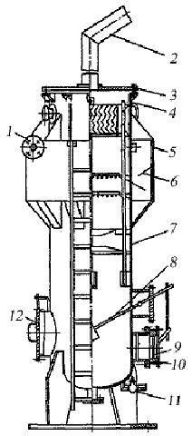 патрубок для рассеивания газа; 7 - люк верхний; 8 - люк нижний; 9 - патрубок
