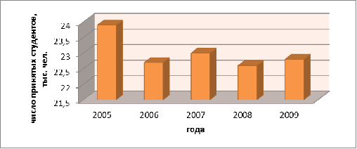 Средний уровень численности принятых студентов в высшие заведения за 5