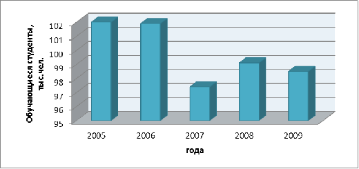 Рисунок 8 Динамика численности учащихся в учреждениях высшего