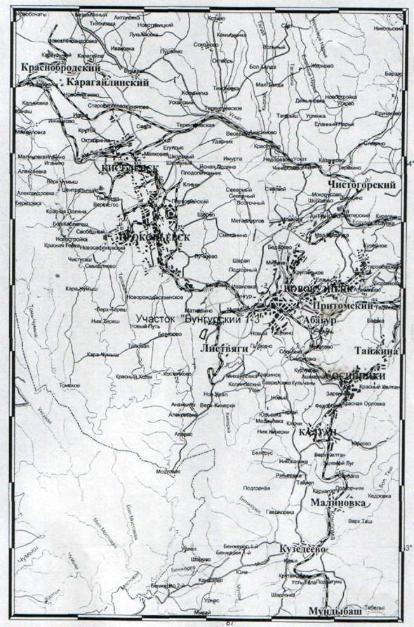 В 12 км к юго-западу от поля участка № 1 находится город Новокузнецк, а в