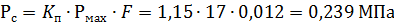 Рс =0,239МПа- усилие вдоль плунжира;