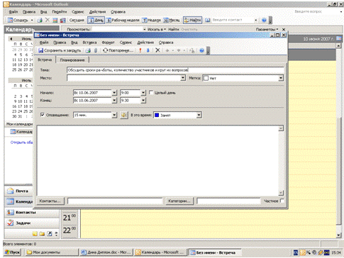 Решение задач учёта и контроля исполнения документов в среде «MS Outlook»
