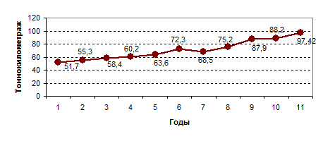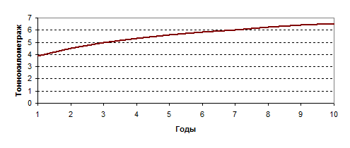 млн.ткм) был получен с помощью гиперболической зависимости II типа, которая дала