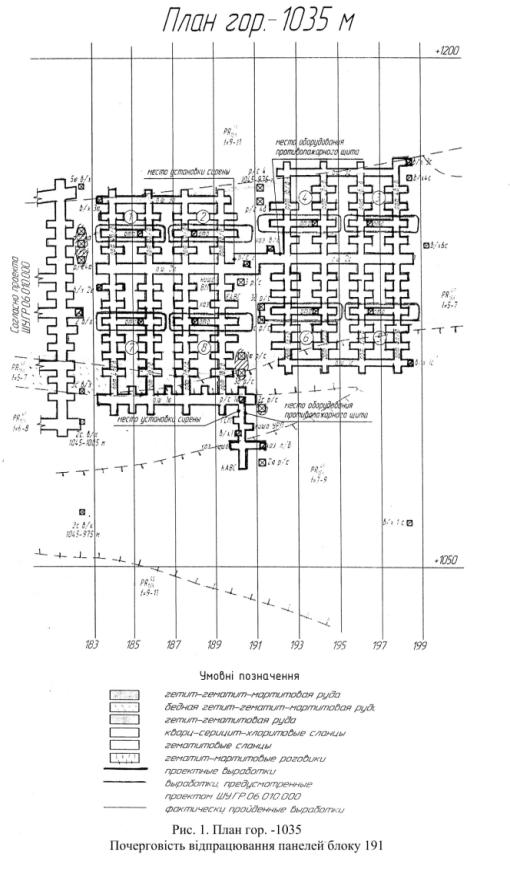 гор. -1045 м - -1035 м вісі, спускаються на гор. -1045 м в орт-заїзд 191 вісі,