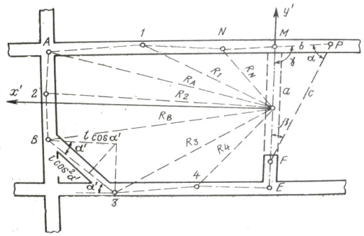 між собою під землею. При похибці вимірювання довжин ліній в шахті