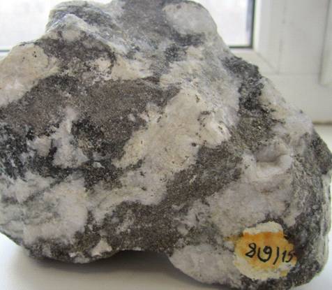 черную. Галенит в меньшем количестве по сравнению со сфалеритом и