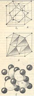 алмаза, с той разницей, что центры малых кубов заняты иными атомами (ионами),