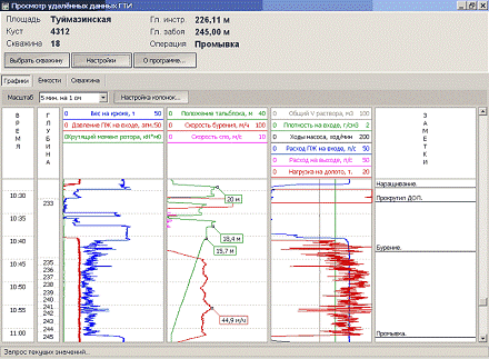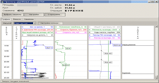 Рис.3. «основной экран» наблюдения удалённой скважины: