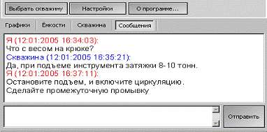 Рис.6. «Экран сообщения» для обмена сообщениями с оператором на буровой: