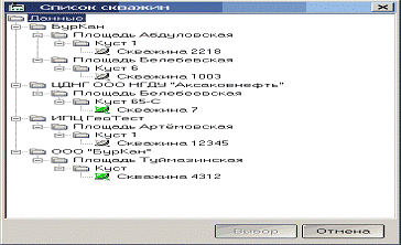 Рис.7.«Экран выбор скважины» для выбора скважины для наблюдения