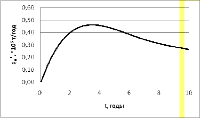 Рисунок 3.6 - Изменение добычи нефти qн в процессе разработки.
