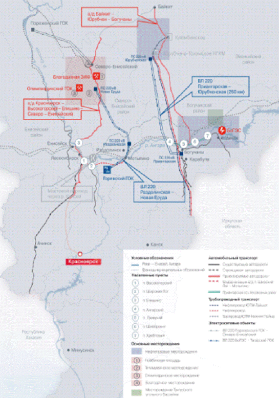Карта-схема объектов проекта «Комплексное развитие Нижнего Приангарья»