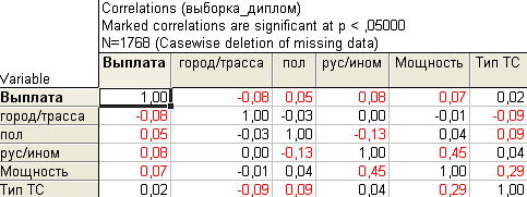 оказывающих влияние на убыточность (количество машин, плотность движения,