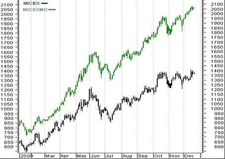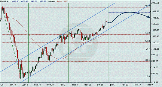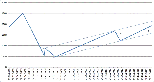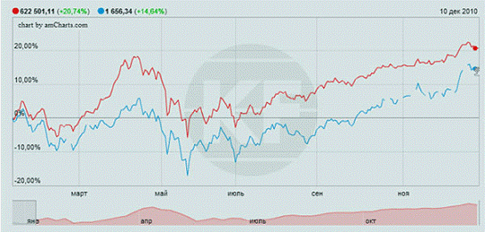 динамикой индекса РТС, т.е. наблюдался медленный, но устойчивый рост.