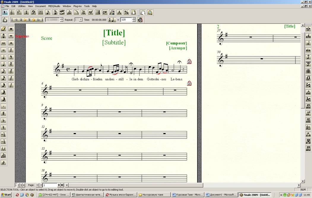 на двух строчках - в виде вокальной партии и цифрованного баса. Предполагалось,