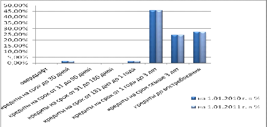 диверсифицированность кредитного портфеля по срокам предоставления кредитных ресурсов.