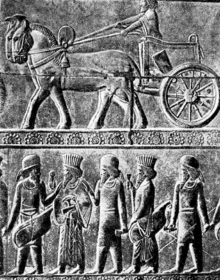 боевая колесница и царские гвардейцы. Дарий I, побеждающий