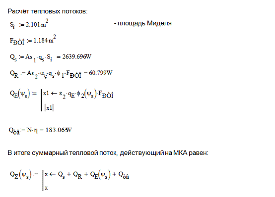 значение суммарного теплового потока, действующего на МКА (Приложение 1):