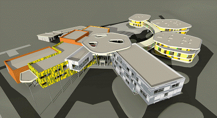 школу и общественный корпус, вместе составляющие единый комплекс. В