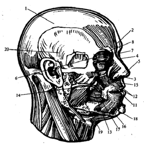 части ушей, от носа к средней части ушей, от середины подбородка к нижней