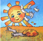много света. Солнце светит ярко, Стало очень жарко.
