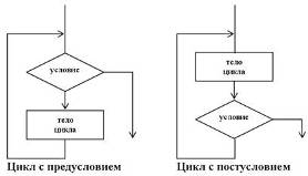 из приведенных блок-схем, очевидно основное различие двух циклов: цикл с