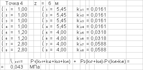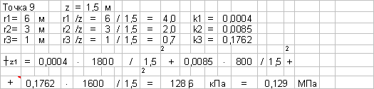 напряжения в заданных точках массива грунта. Значения коэффициента kс