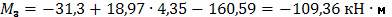 действуют изгибающие моменты, примерно равные по значению, но с разными
