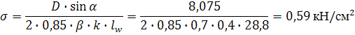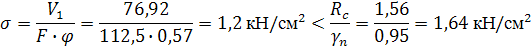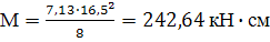 передается через распорку из швеллера №16. Напряжение изгиба в распорке: