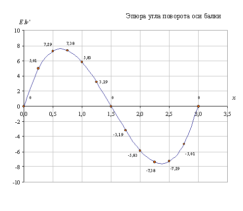 прогиба оси балки Рис. 15. Эпюра угла поворота оси балки