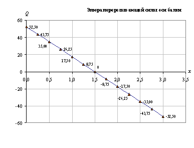 Рис. 12. Эпюра перерезывающей силы оси балки