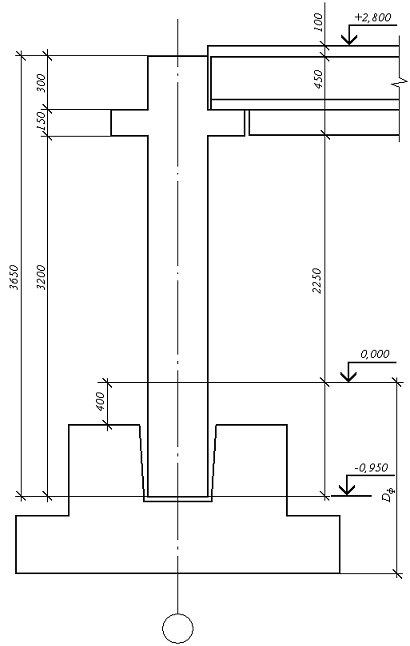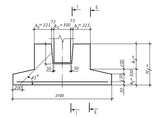 300 + 50 = 500 мм, принимаем hcf = 650 мм. Так как h2 = 750 мм < hcf = 650