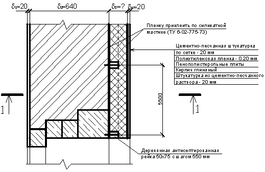 толщиной 50 мм, покрытые стеклотканью и деревянными рейками 50´20 мм положенными «плашмя» через 250 мм.
