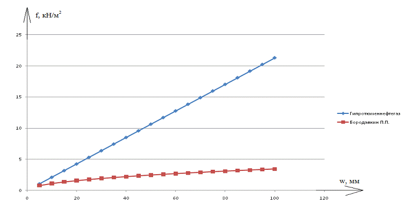 расчетных формул Гипротюменнефтегаз и Бородавкина П.П. для сопротивления