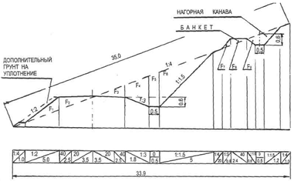 изучена схема возведения земляного плотна типа полунасыпь-полувыемка.