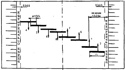последовательных проходов автогрейдера от краев к середине с перекрытием