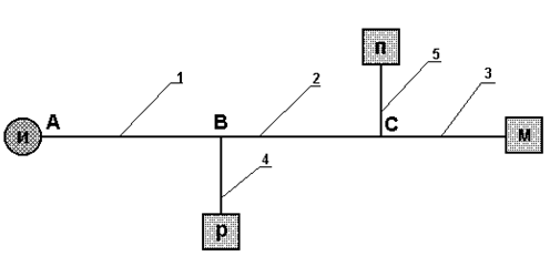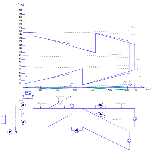 Суммарный расход сетевых насосов равен расходу на первом участке (AB):